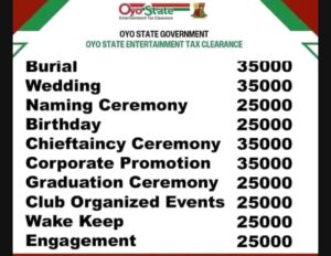 It was gathered that the state government under the leadership of Engineer Seyi Makinde introduced #35,000 as levy for burial, wedding and chieftaincy ceremony in the state.