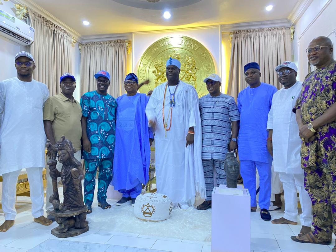 The Permanent Chairman of the Southern Nigerian Traditional Rulers Council (SNTRC), Arole Oodua Olofin Adimula and the Natural Head of the Oduduwa race worldwide, the Ooni of Ife, Ooni Adeyeye Enitan Ogunwusi, CFR, Ojaja II, has hosted the All Progressives Congress (APC) governorship candidate in Osun State, Bola Oyebamiji, popularly known as AMBO, at the revered Ile Oodua Palace in Ile-Ife.